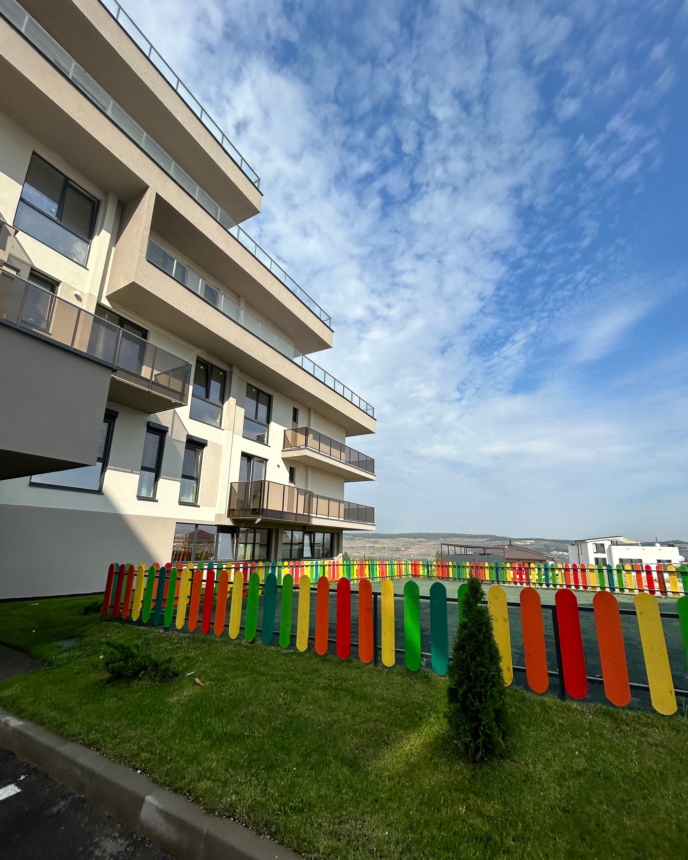Arhitectura exterioară și spațiile verzi se îmbină armonios cu geografia terenului și natura din împrejurimi, pentru a crea o senzație de liniște și comuniune cu mediul. Spațiile de joacă dedicate, zonele de relaxare și un spațiu verde pentru animalele de companie transformă micul nostru cartier cochet într-o oază de liniște pentru întreaga familie.